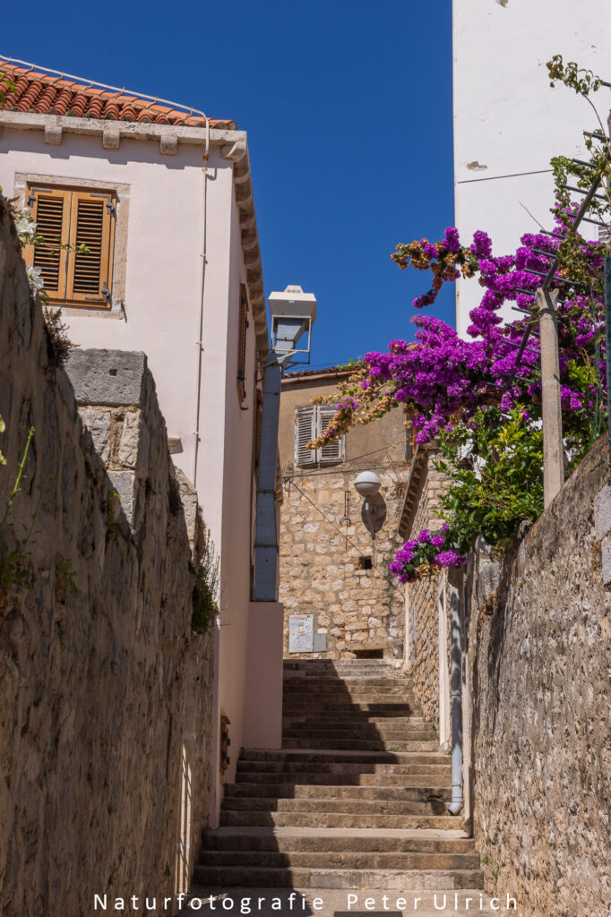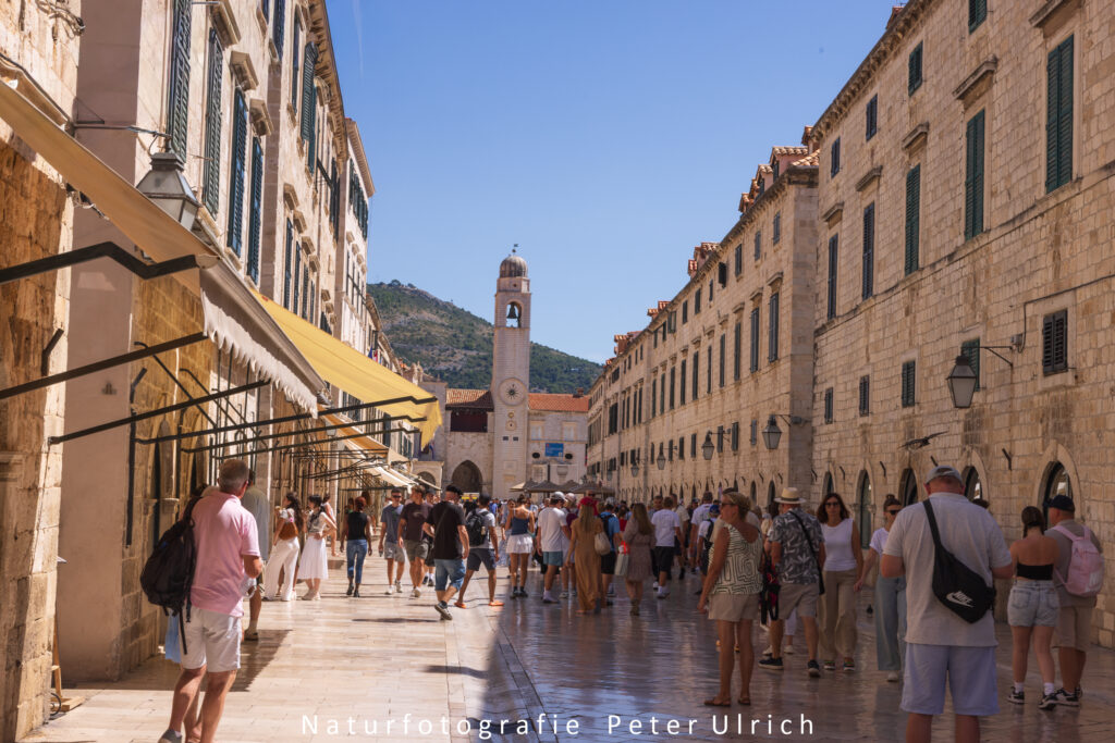 An Dubrovnik, so meint man, kann man nicht vorbeifahren. Der Besuch der Altstadt ist jedoch alles andere als ein Vergnügen. Wir fanden in einem Parkhaus nach langem Suchen noch ein Plätzchen für unser Auto. Dann machten wir uns über viele Stufen hinunter auf den Weg in die Historische Altstadt. Dort drängelten sich, wie nicht anders zu erwarten, Menschenmassen. Bei großer Hitze suchten alle die schattigen Seiten und Sträßchen.