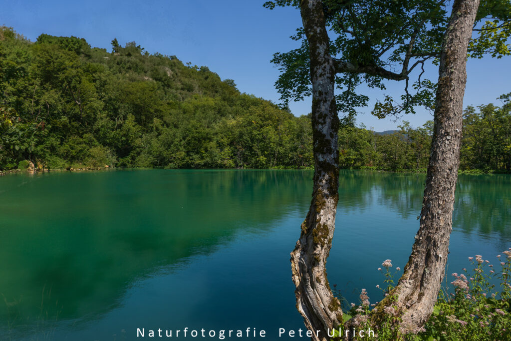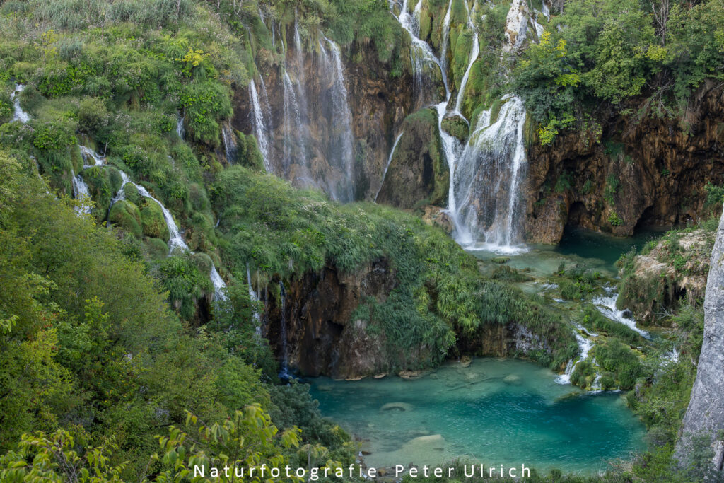 Der Nationalpark Plitvicer Seen ist ein 295 km² großes Waldschutzgebiet in der Landesmitte Kroatiens. Der Nationalpark ist für seine 16 kaskadenförmig angeordneten Seen bekannt, die durch Wasserfälle miteinander verbunden sind und sich in eine Kalksteinschlucht hinein erstrecken. Mehrere Spazier- und Wanderwege verlaufen am Ufer entlang oder quer über das Wasser. Eine elektrisch betriebene Fähre verbindet die 12 oberen mit den 4 unteren Seen. Im unteren Seenbereich befindet sich auch der Veliki Slap, ein 78 m hoher Wasserfall.